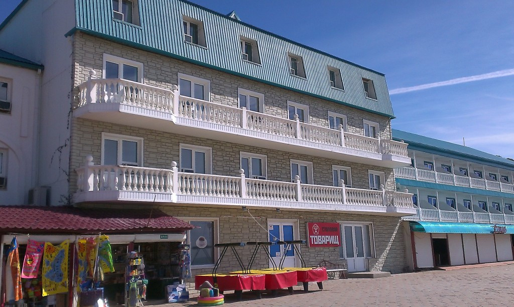 Номерной фонд: 2-местные номера (12-14 кв. м) на 3 и 4 этажах без балкона, с видом на море. В номере: две односпальные кровати, санузел в кафеле (душ (поддон+занавеска), раковина, унитаз), оконный кондиционер, телевизор, холодильник, шкаф для вещей, прикроватные тумбочки, столик, кувшин и стаканы, пол – ковролин. Фена – нет. Дополнительное место – раскладушка/еврораскладушка. Макс. размещение: 2 осн. места + 1 доп. место + 2 без места.