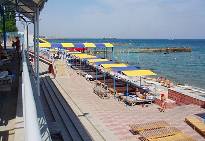 Пляж: в 200 м, галечный, собственный, 3х-уровневый. Бесплатно: лежаки, навесы, туалет, кабинки для переодевания. Платно: шезлонги